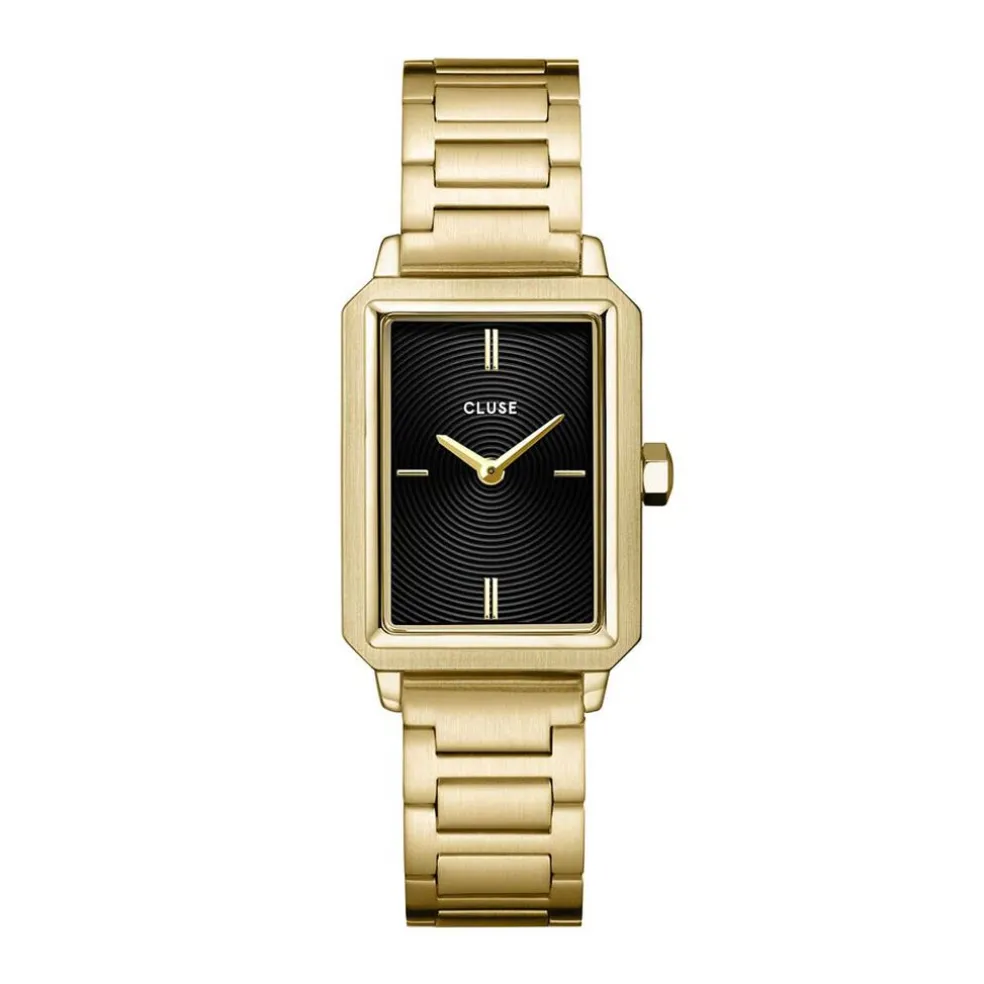 Montre Cluse Fluette Acier Doré Rectangulaire Quartz 30.6mm Fond Noir Bracelet Acier Doré Cw11512