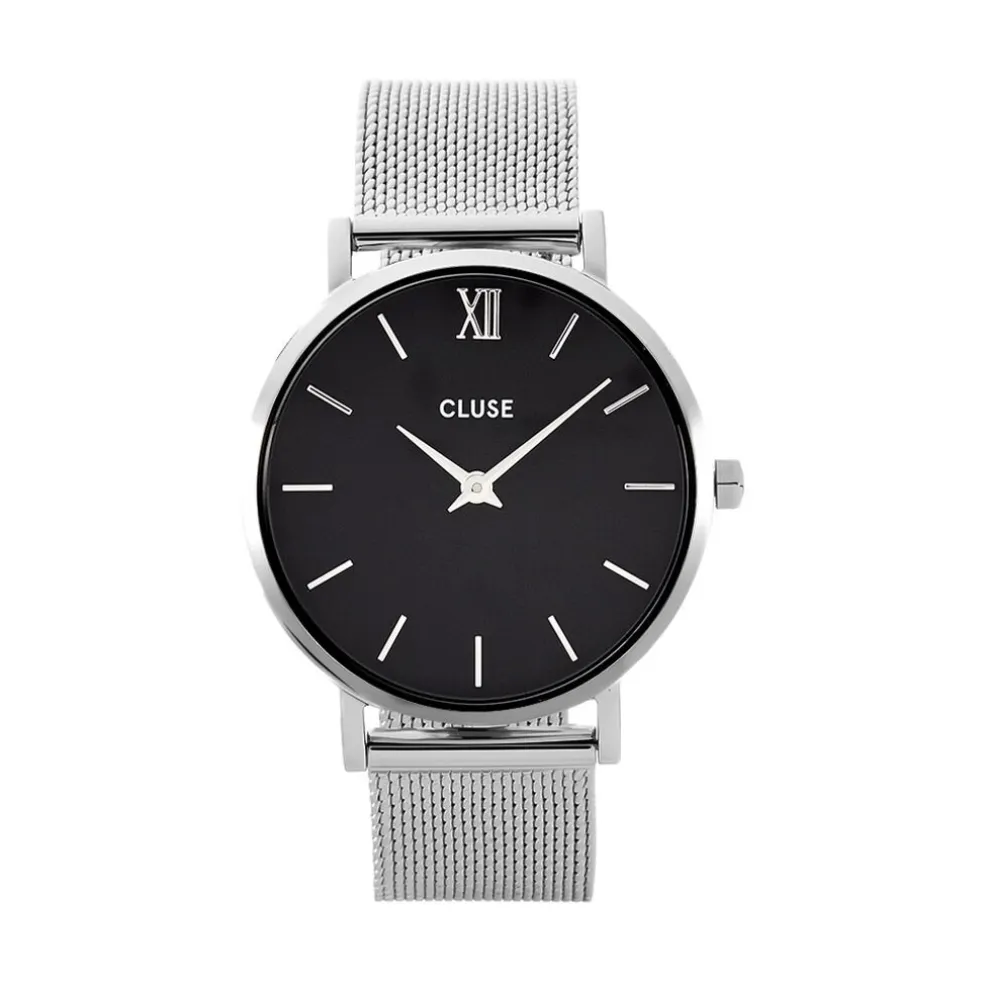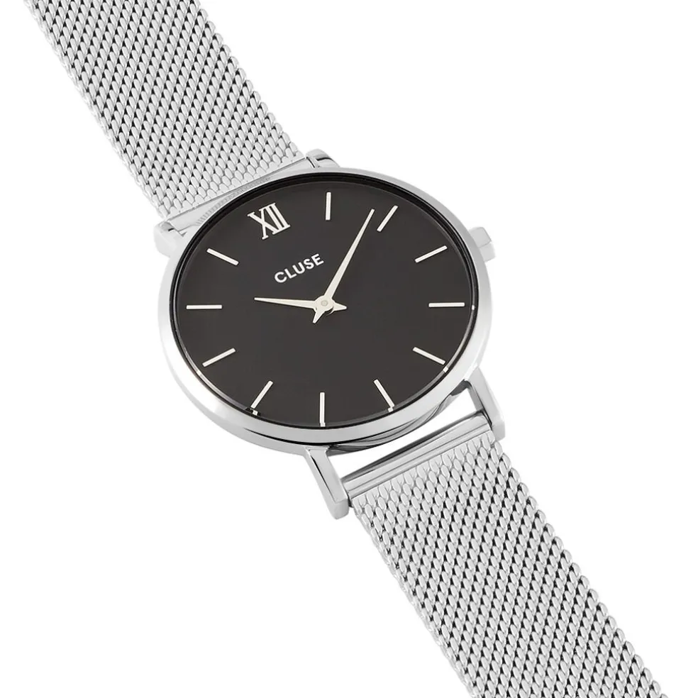 Montre Cluse Minuit Acier Blanc Ronde Quartz 33mm Fond Noir Bracelet Acier Blanc Cw0101203005