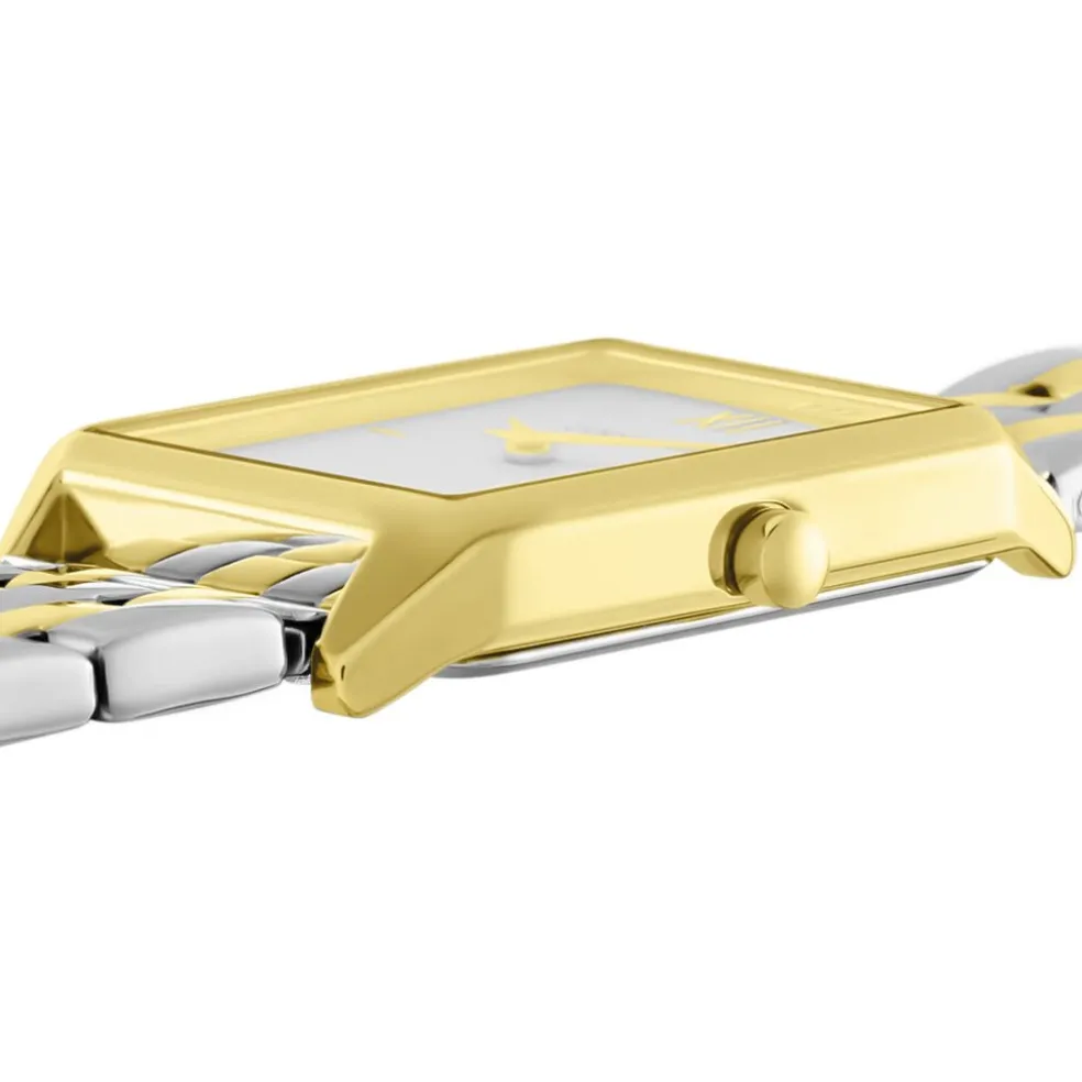 Montre Codhor Arianne Alliage Dore Rectangulaire Quartz 24x36mm Fond Blanc Bracelet Acier Bicolore P100966-c