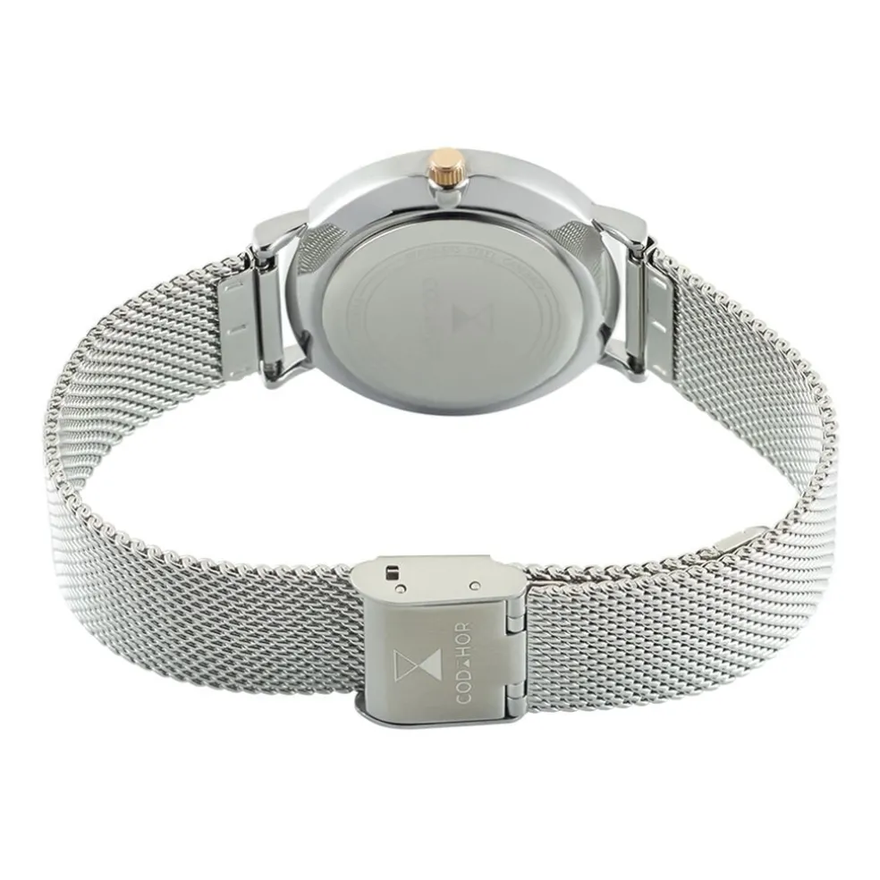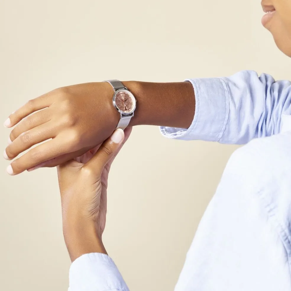 Montre Codhor Camille Alliage Argenté Ronde Quartz 33mm Fond Rose Arbre Bracelet Milanais Acier Argenté P100881-p