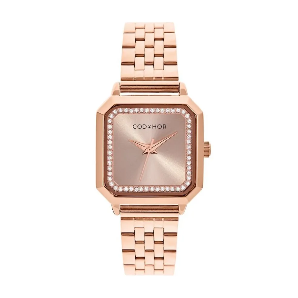 Montre Codhor Carla Alliage Rose Carre Quartz 26mm Fond Rose Strass Blanc Bracelet Acier Rose Ch.4999la/02m