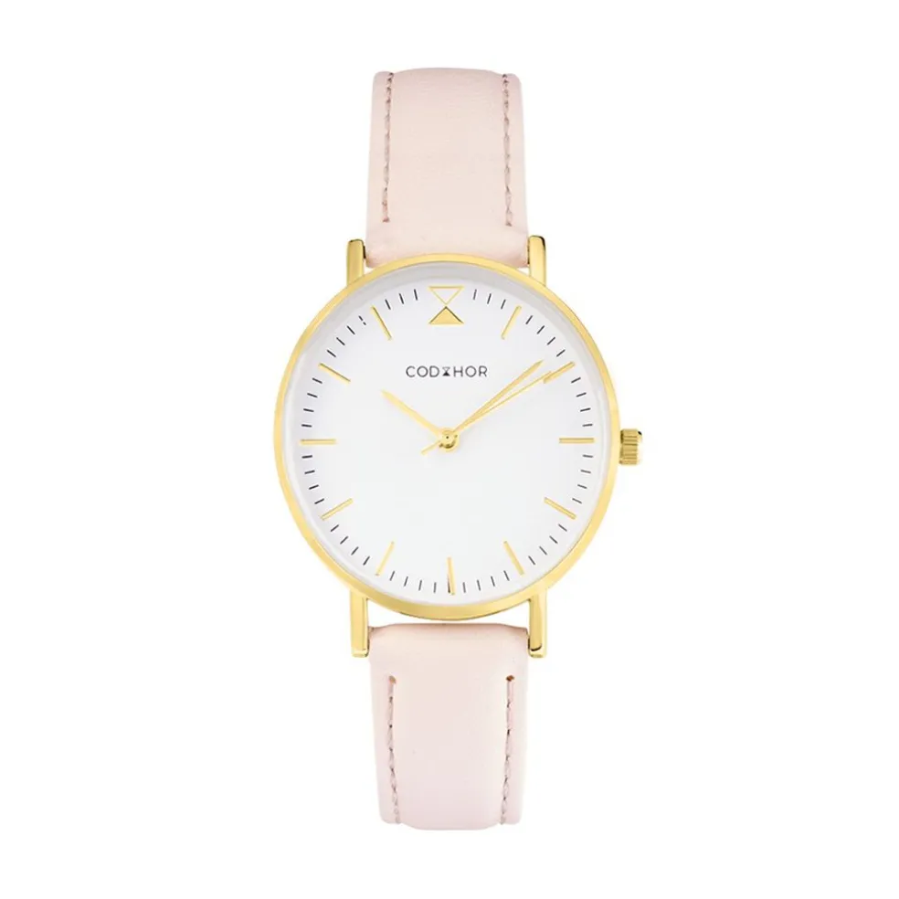 Montre Codhor Cindy Alliage Doré Ronde Quartz 34mm Fond Blanc Bracelet Synthétique Rose Wba0025-011