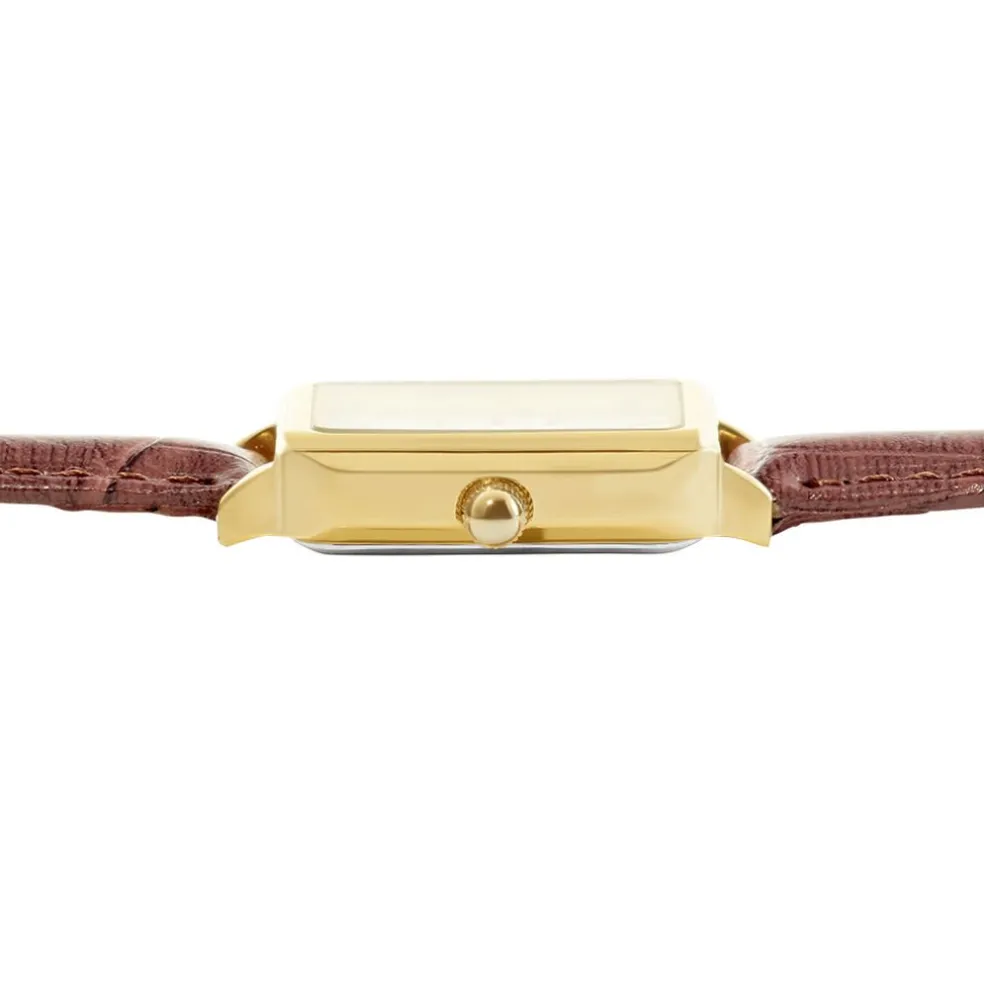 Montre Codhor Eleonia Alliage Doré Rectangulaire Quartz 25mm Fond Blanc Bracelet Synthétique Effet Alligator Marron Wba0107-006