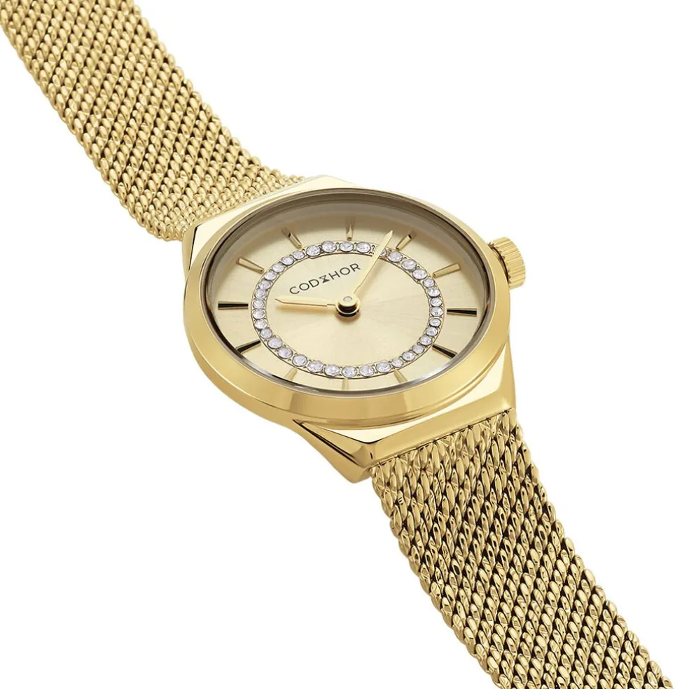 Montre Codhor Lola Alliage Doré Ronde Quartz 27mm Fond Doré Et Strass Bracelet Milanais Acier Doré Wba0310-002