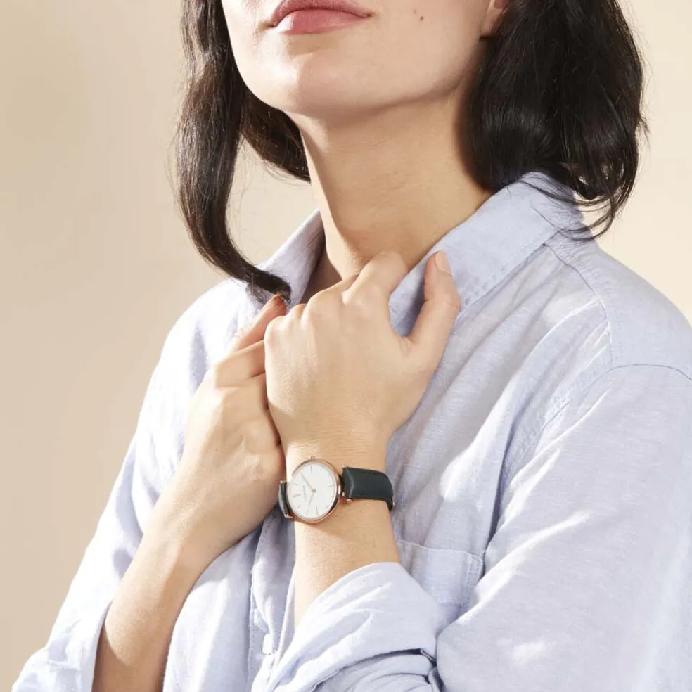 Montre Codhor Nidia Alliage Doré Rose Ronde Quartz 33mm Fond Blanc Bracelet Synthétique Vert P100896-af