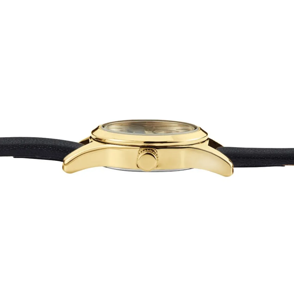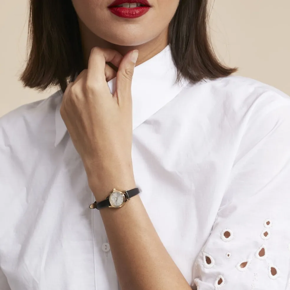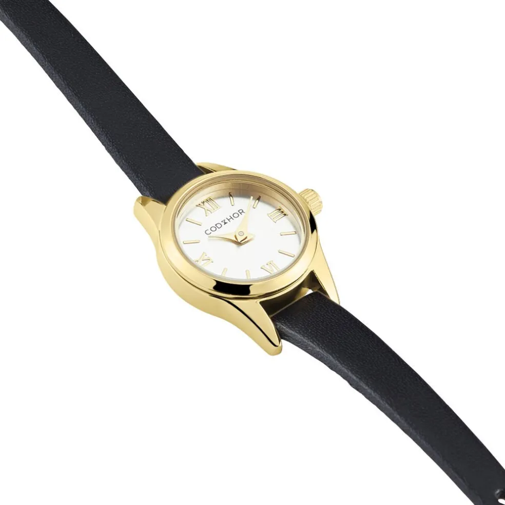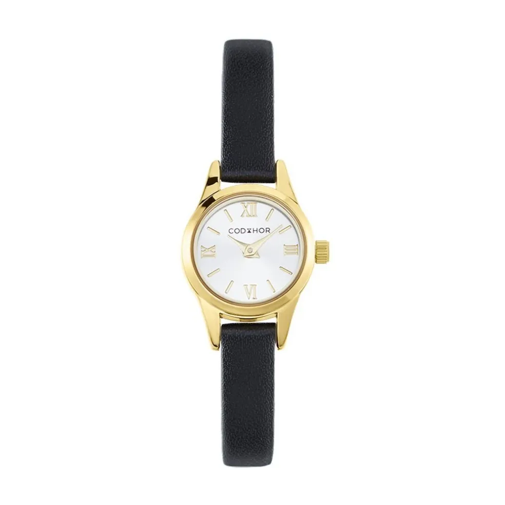 Montre Codhor Simone Alliage Doré Ronde Quartz 19.4mm Fond Argenté Bracelet Synthétique Noir P101040-b