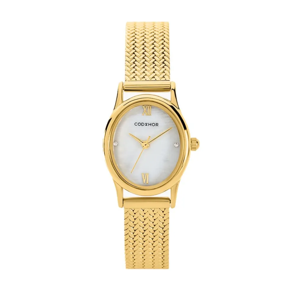 Montre Codhor Suzanne Alliage Dore Ronde Quartz 22.5mm Fond Nacre Bracelet Acier Dore P101146-a