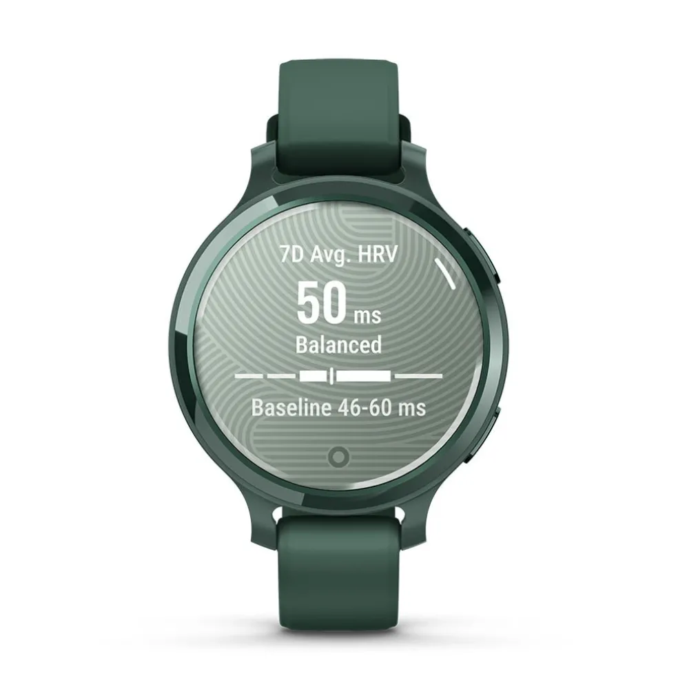 Montre Connectee Garmin Lily 2 Active Aluminium Vert Ronde Multifonction 38mm Fond Vert Bracelet Silicone Vert 010-02891-02