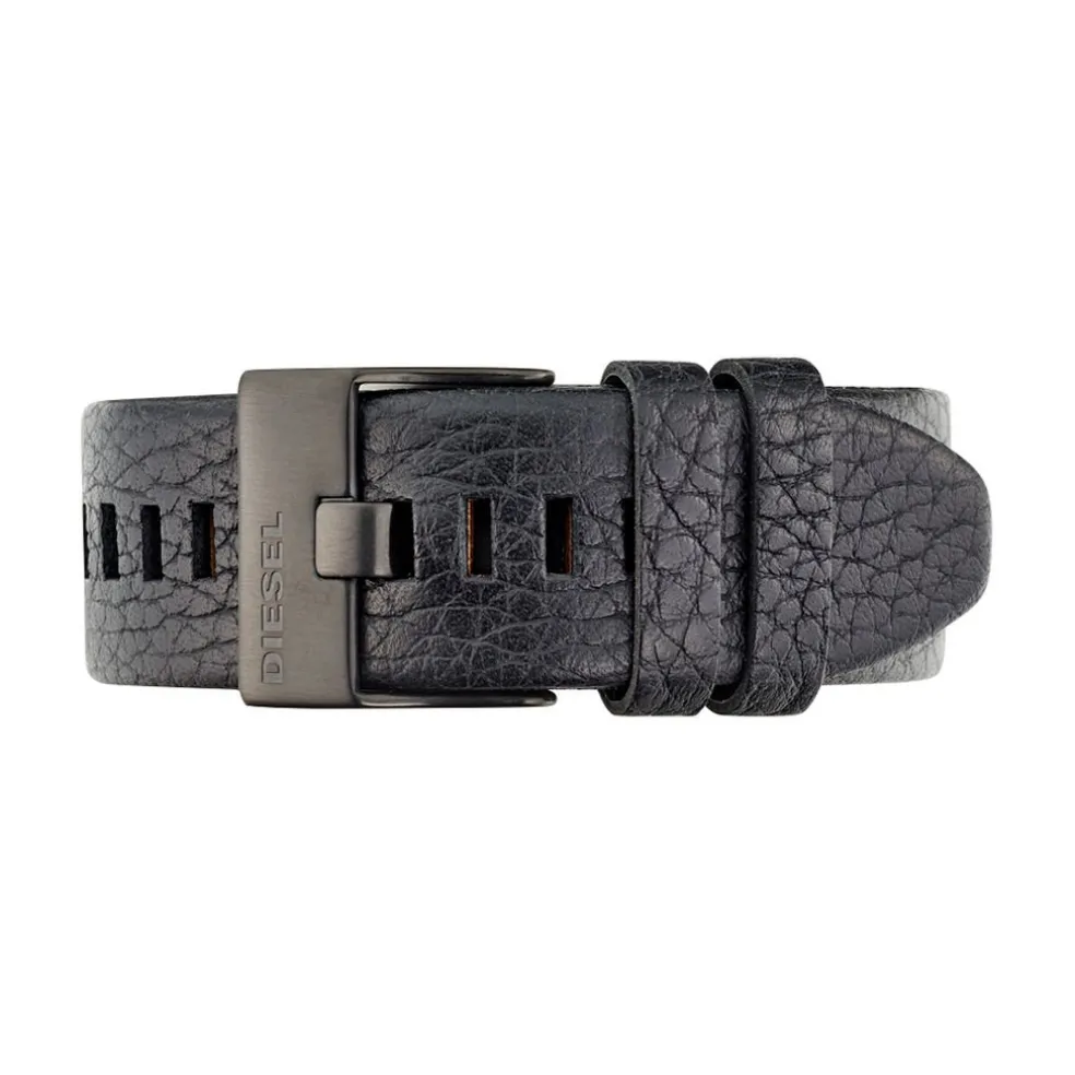 Montre Diesel Master Chief Acier Noir Ronde 45mm Fond Bleu Orange Bracelet Cuir Noir Dz1657