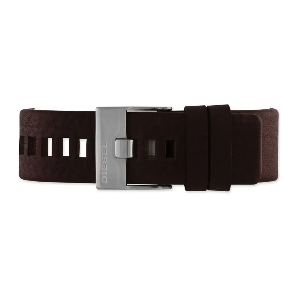 Montre Diesel Master Chief Acier Blanc Ronde Quartz 45mm Fond Gris Bracelet Cuir Marron Dz1206