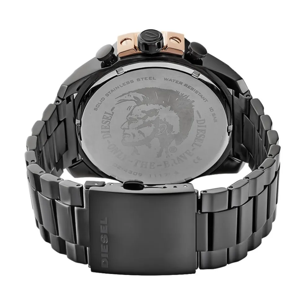Montre Diesel Mega Chief Acier Noir Ronde Quartz Chronographe 51mm Fond Noir Bracelet Acier Noir Dz4309