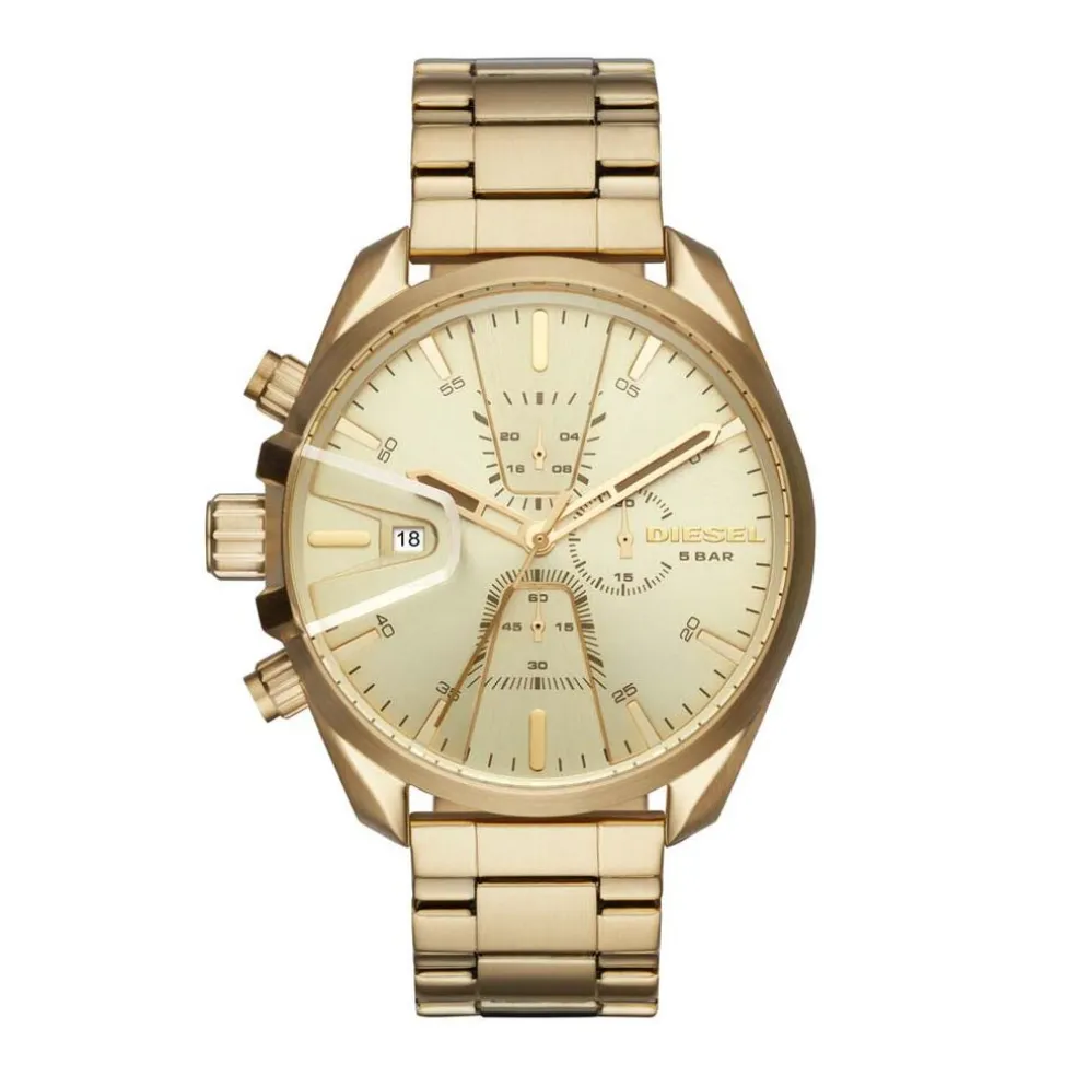 Montre Diesel Ms9 Acier Dore Ronde Quartz 47mm Fond Dore Bracelet Acier Dore Dz4475