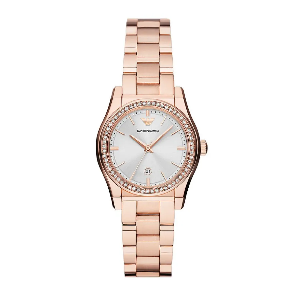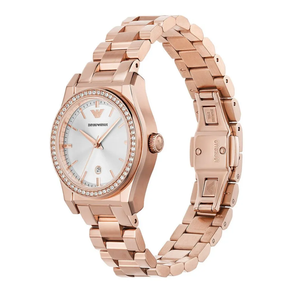 Montre Emporio Armani Acier Rose Rond 32mm Quartz Fond Argente Bracelet Acier Rose Ar11558