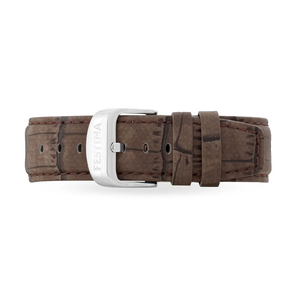Montre Festina Retro Acier Blanc Ronde Quartz 46mm Fond Noir Bracelet Cuir Marron F165734