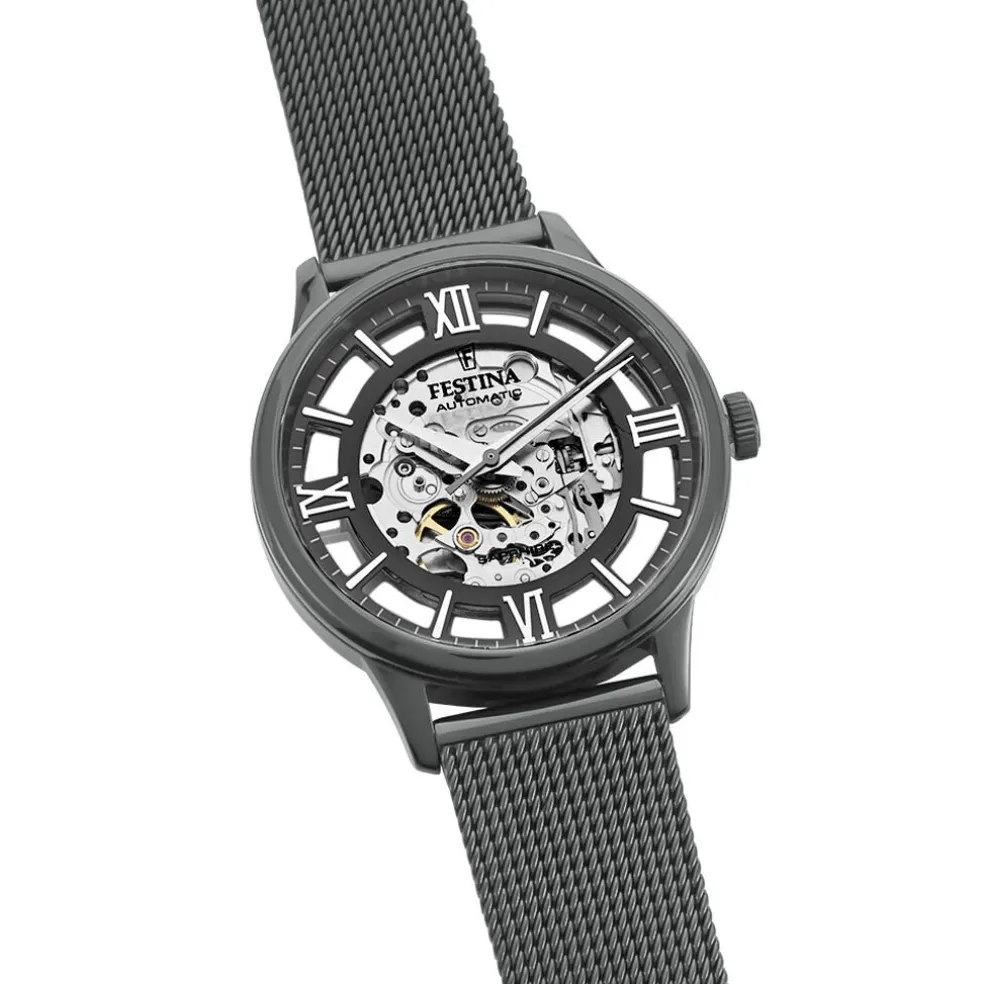 Montre Festina Squelette Acier Noir Ronde 42mm Fond Noir Bracelet Acier Milanais Noir F20535/1
