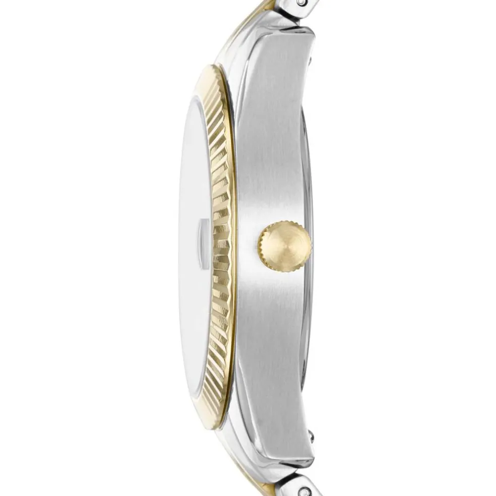 Montre Fossil Scarlette Mini Acier Argenté Ronde Quartz 32mm Fond Doré Bracelet Acier Multicolore Es4949