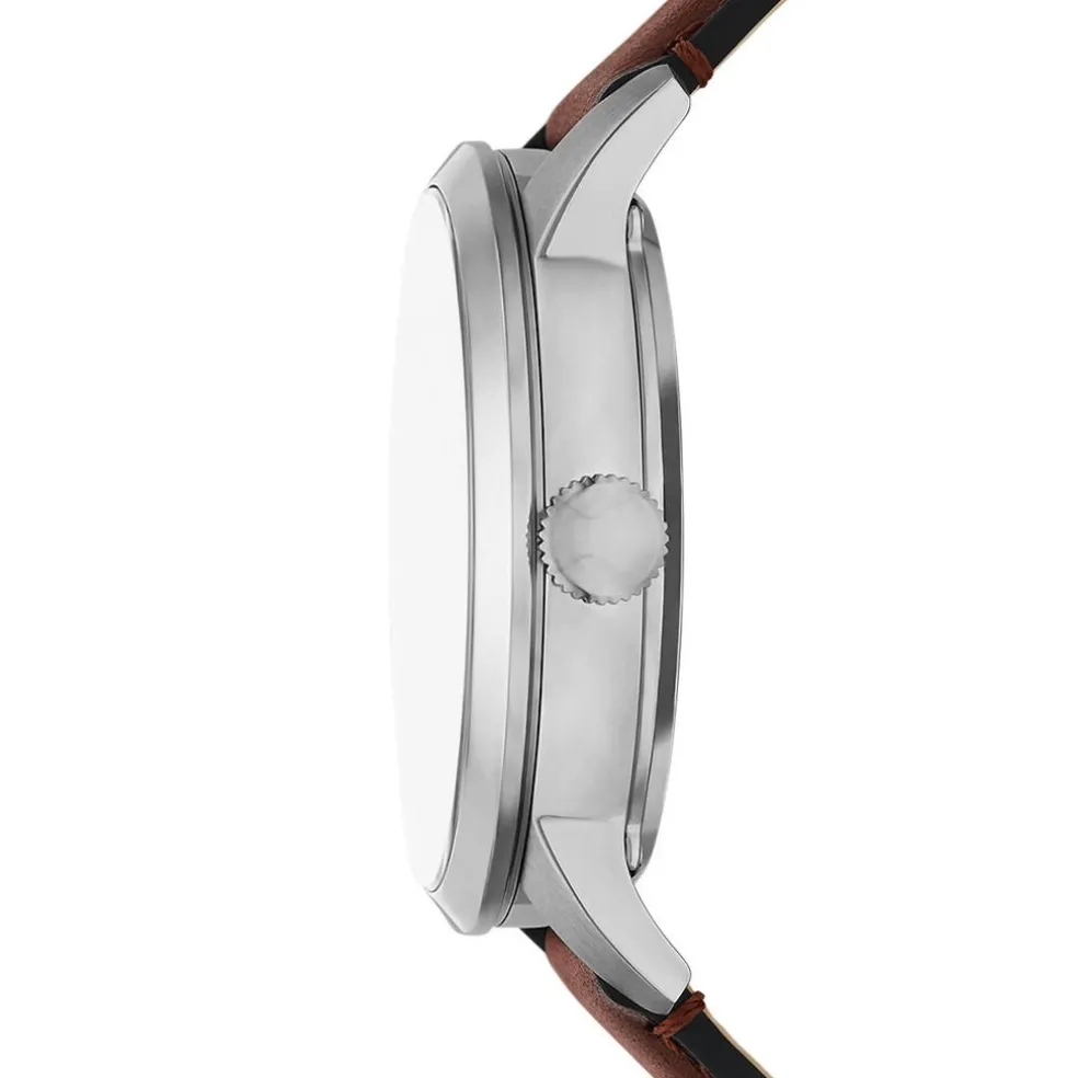 Montre Fossil Townsman Acier Argente Ronde Automatique 44mm Fond Squelette Bracelet Cuir De Vache Marron Me3267