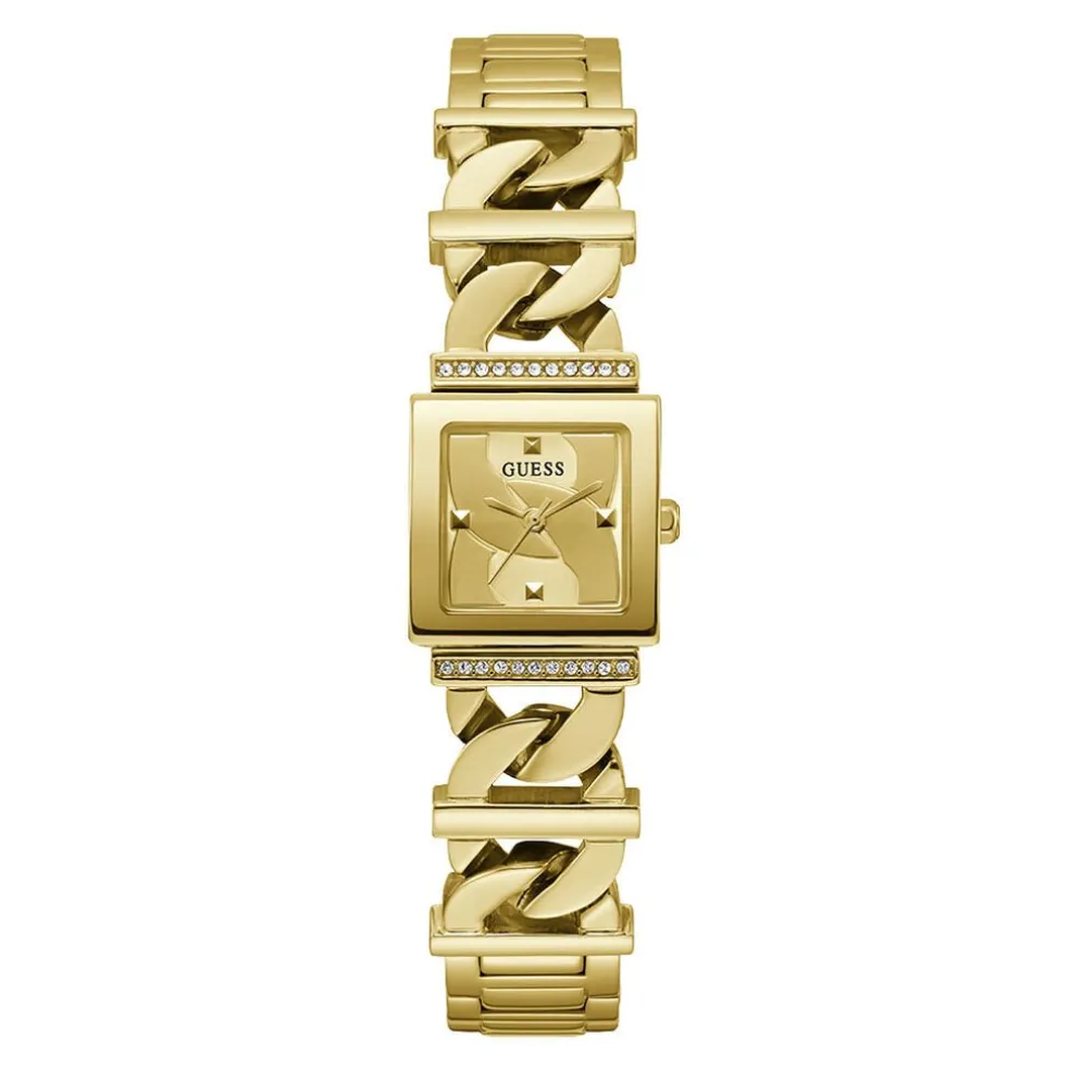 Montre Guess Runaway Acier Doré Carre Quartz 20.8×20.8mm Fond Champagne Bracelet Acier Doré Gw0603l2