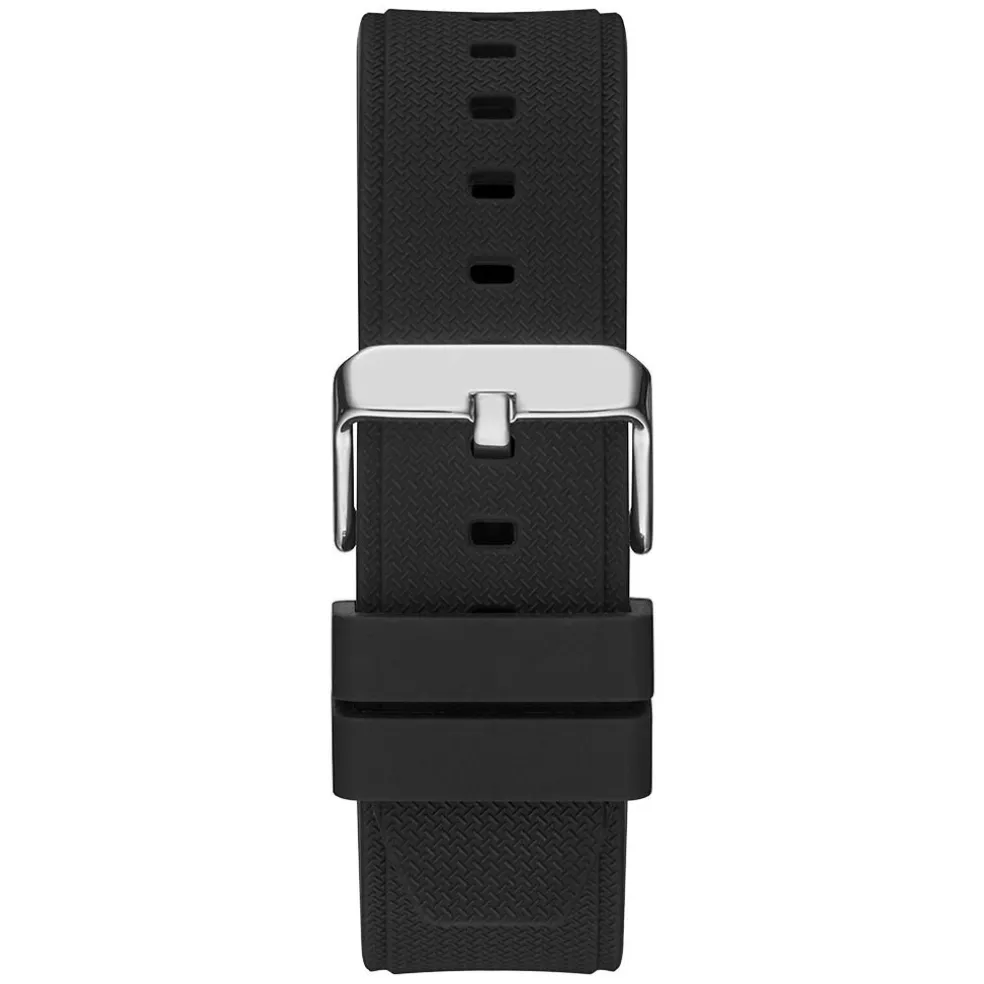 Montre Guess Third Gear Acier Argenté Ronde Multifonction 46mm Fond Noir Bracelet Silicone Noir Gw0334g1