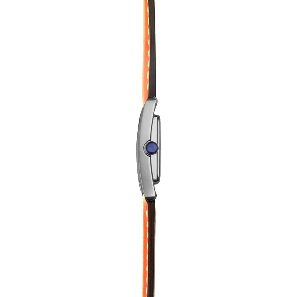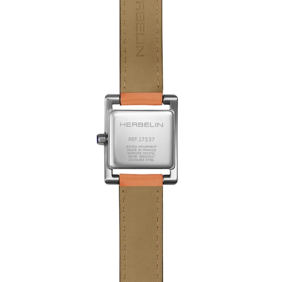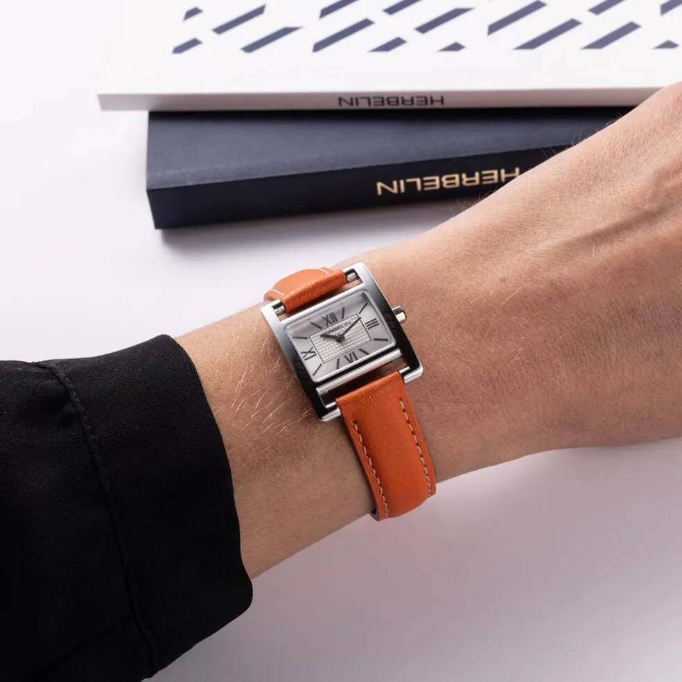 Montre Herbelin 5Eme Avenue Acier Inoxydable Argenté Quartz Rectangulaire 23,4X19Mm Fond Argenté Bracelet Cuir De Veau Orange 17537Ap08Md