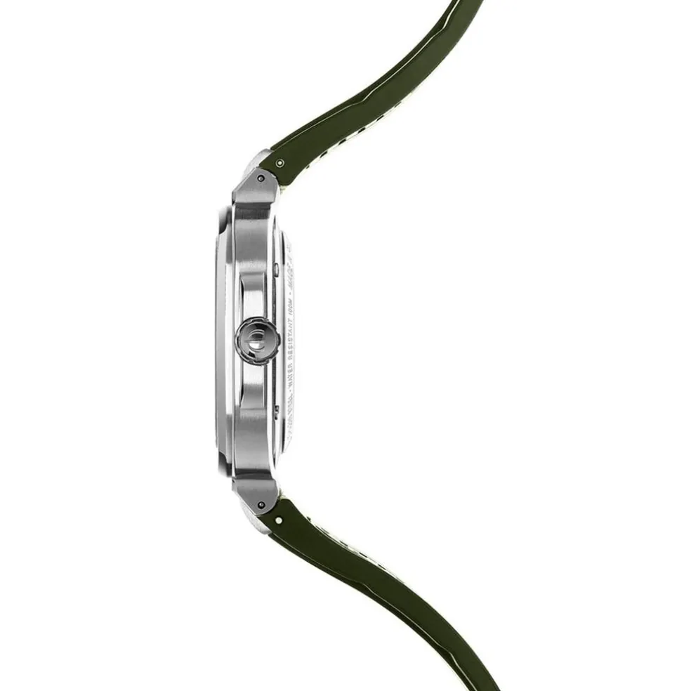 Montre Herbelin Cap Camarat Acier Inoxydable Argenté Quartz Carre 39Mm Fond Kaki Bracelet Silicone Kaki 12246A116Ck