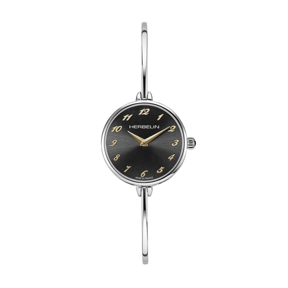 Montre Herbelin Fil Acier Argente Ronde Quartz 26mm Fond Noir Bracelet Acier Argente 17206b24t