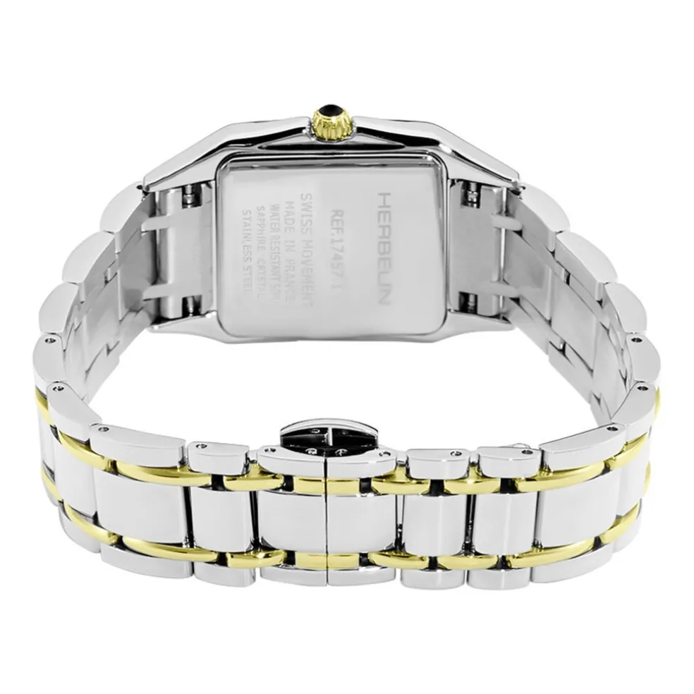 Montre Herbelin Luna Acier Bicolore Carree Quartz 24 X 24mm Fond Argent Bracelet Acier Bicolore 17457bt01