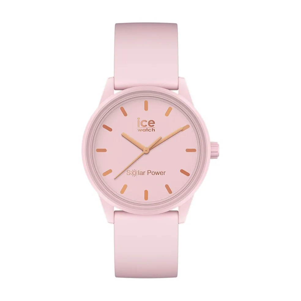 Montre Ice Watch Solar Power Plastique Rose Ronde Solaire 38mm Fond Rose Bracelet Silicone Rose 018479