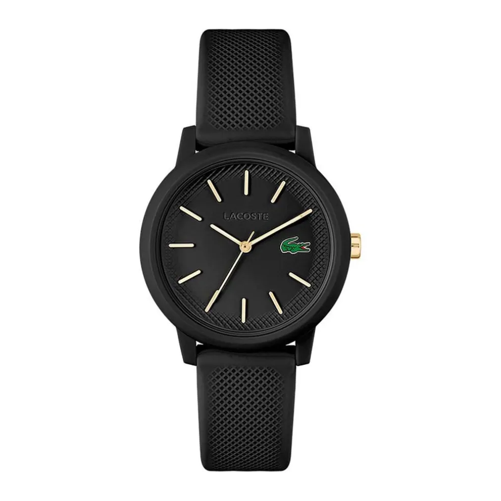 Montre Lacoste 12.12 Silicone Noir Ronde Quartz 36mm Fond Noir Bracelet Silicone Noir 2001212