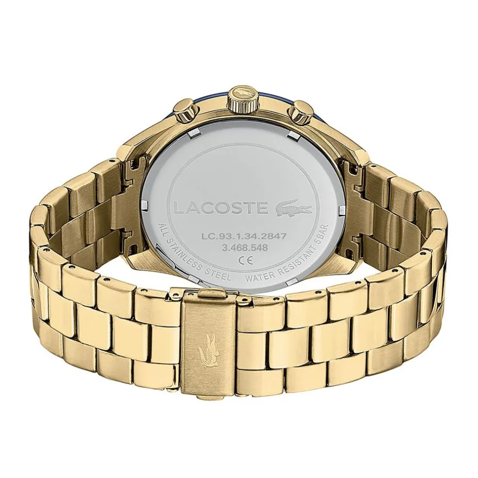 Montre Lacoste Boston Acier Dore Ronde Quartz Chronographe 42mm Fond Bleu Bracelet Acier Dore 2011096