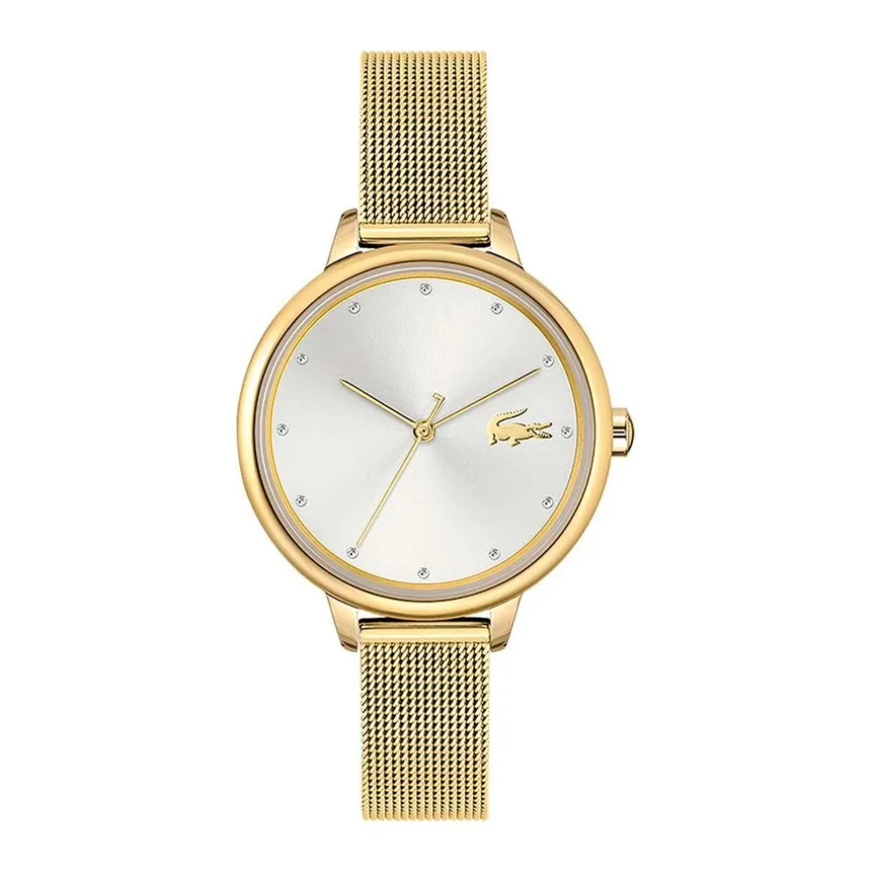 Montre Lacoste cannes Acier Dore Ronde Quartz 34mm Fond Argente Bracelet Acier Dore Maille Milanaise 2001254