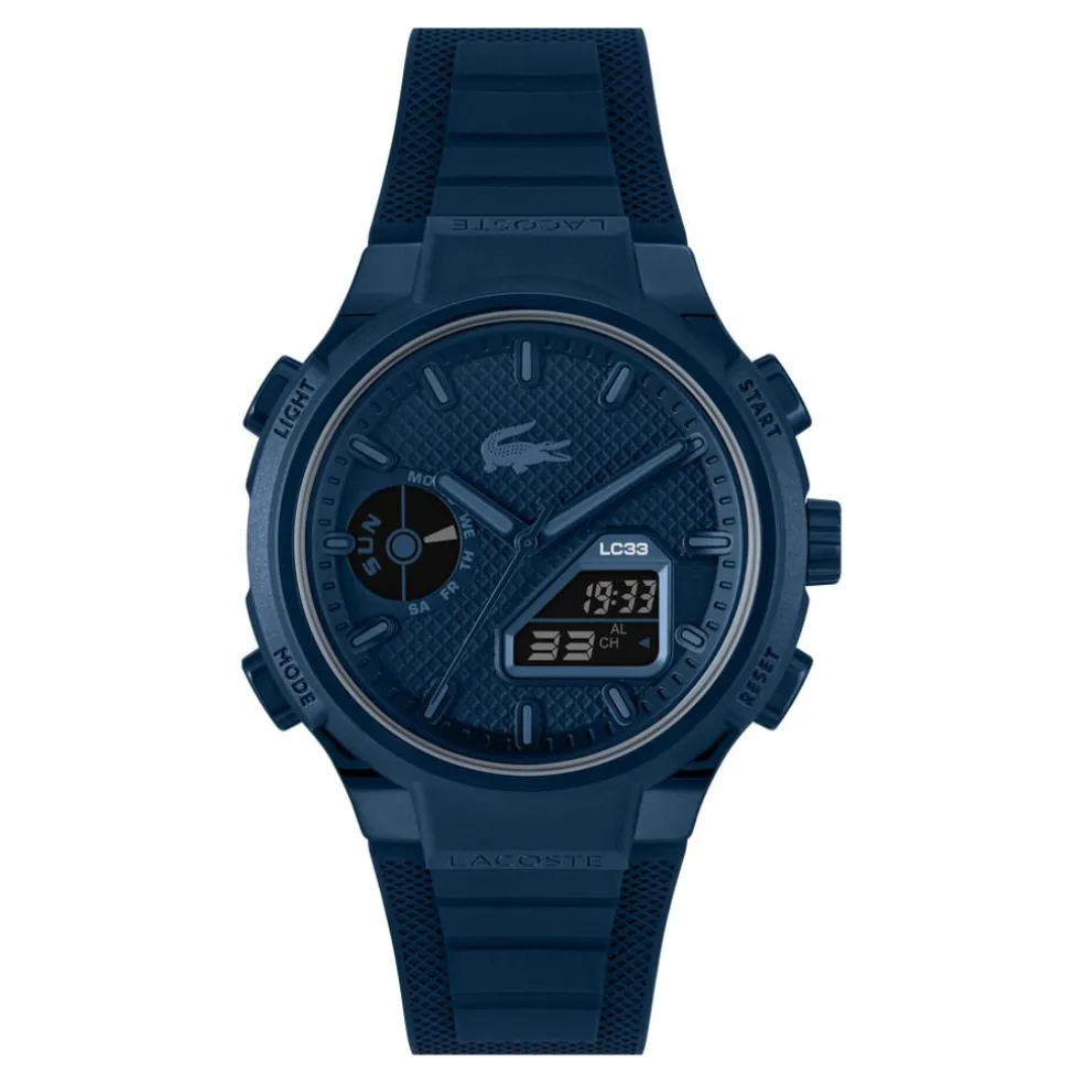 Montre Lacoste Lc33 Tr90 Bleu Quartz Anadigit Multifonctions Ronde 44Mm Fond Noir Bracelet Silicone Bleu 2011448