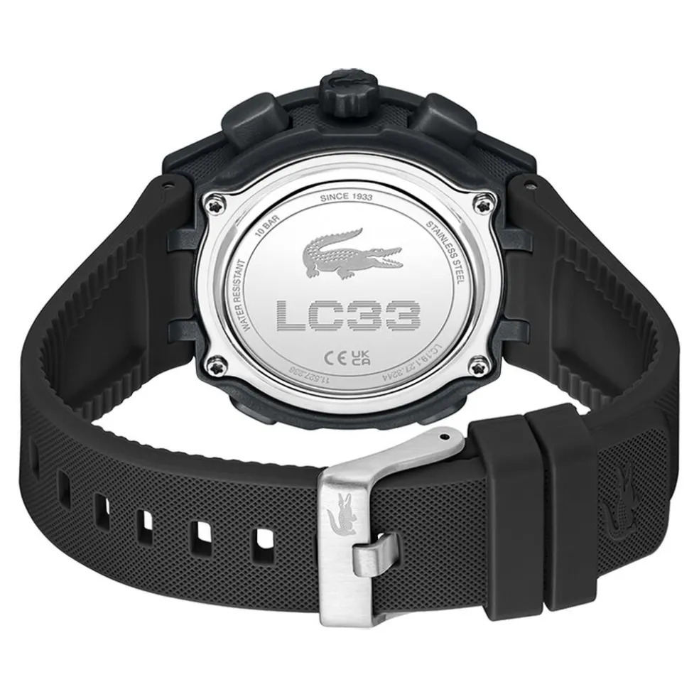 Montre Lacoste Lc33 Tr90 Noir Ronde Quartz 40mm Fond Noir Bracelet Silicone Noir 2001434