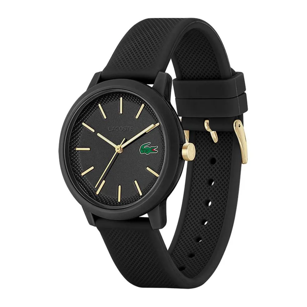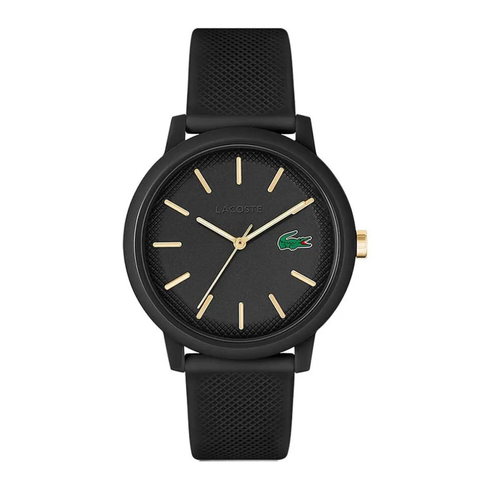 Montre Lacoste 12.12 Silicone Noir Ronde Quartz 42mm Fond Noir Bracelet Silicone Noir 2011233