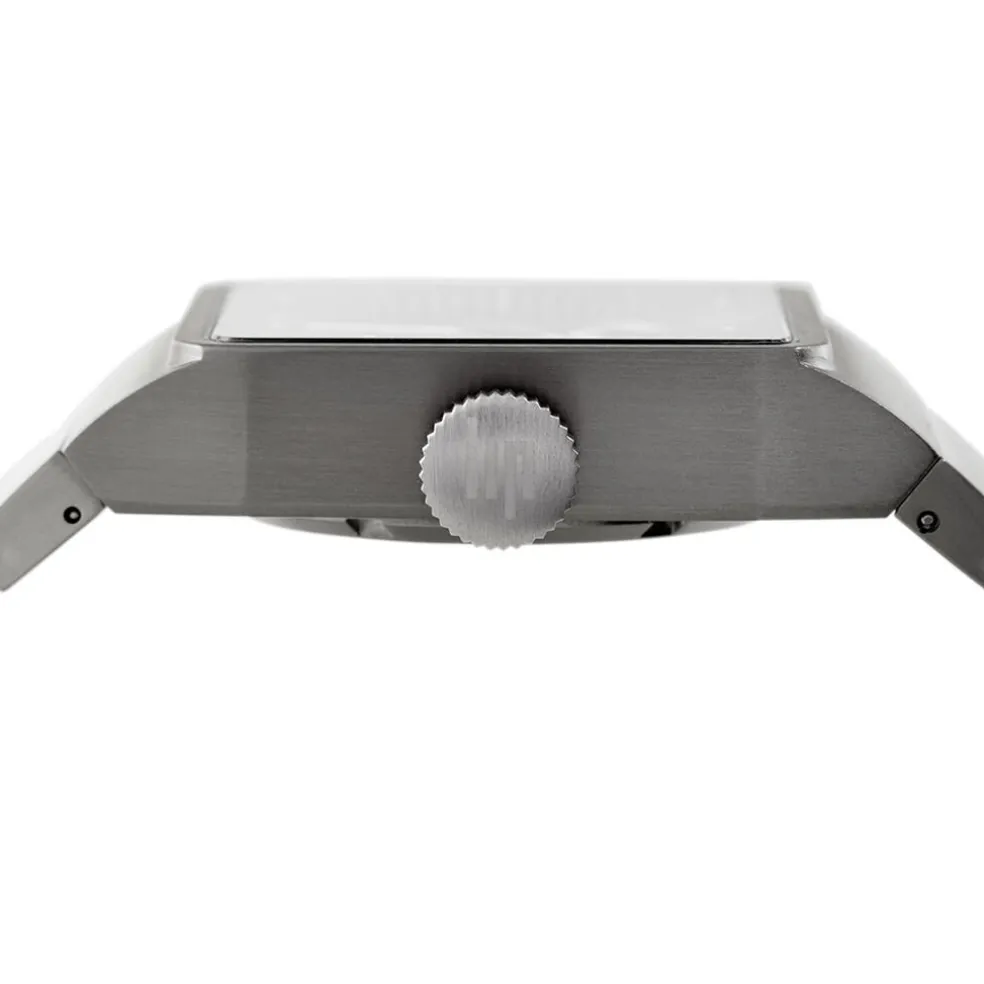 Montre Lip Big Titane Titane Gris Carré Automatique 35mm Fond Noir Bracelet Titane Gris 671657
