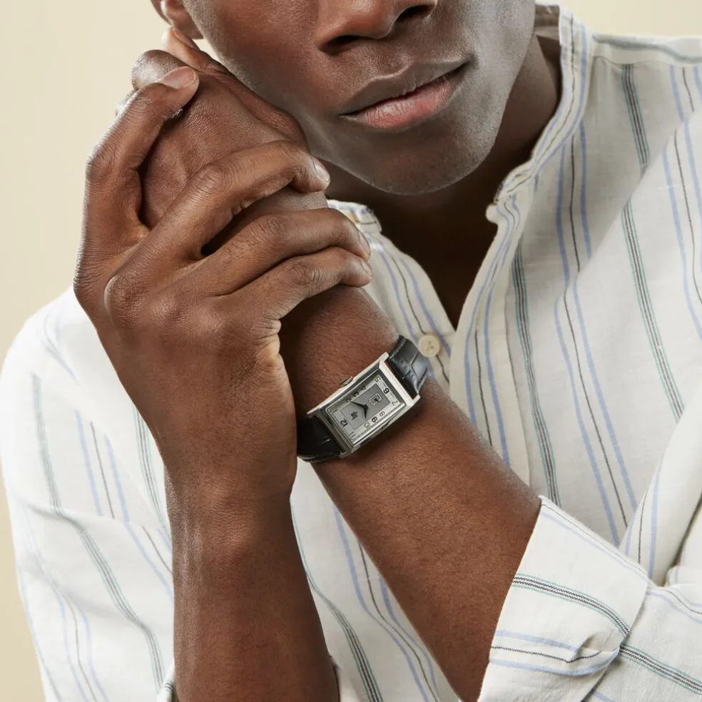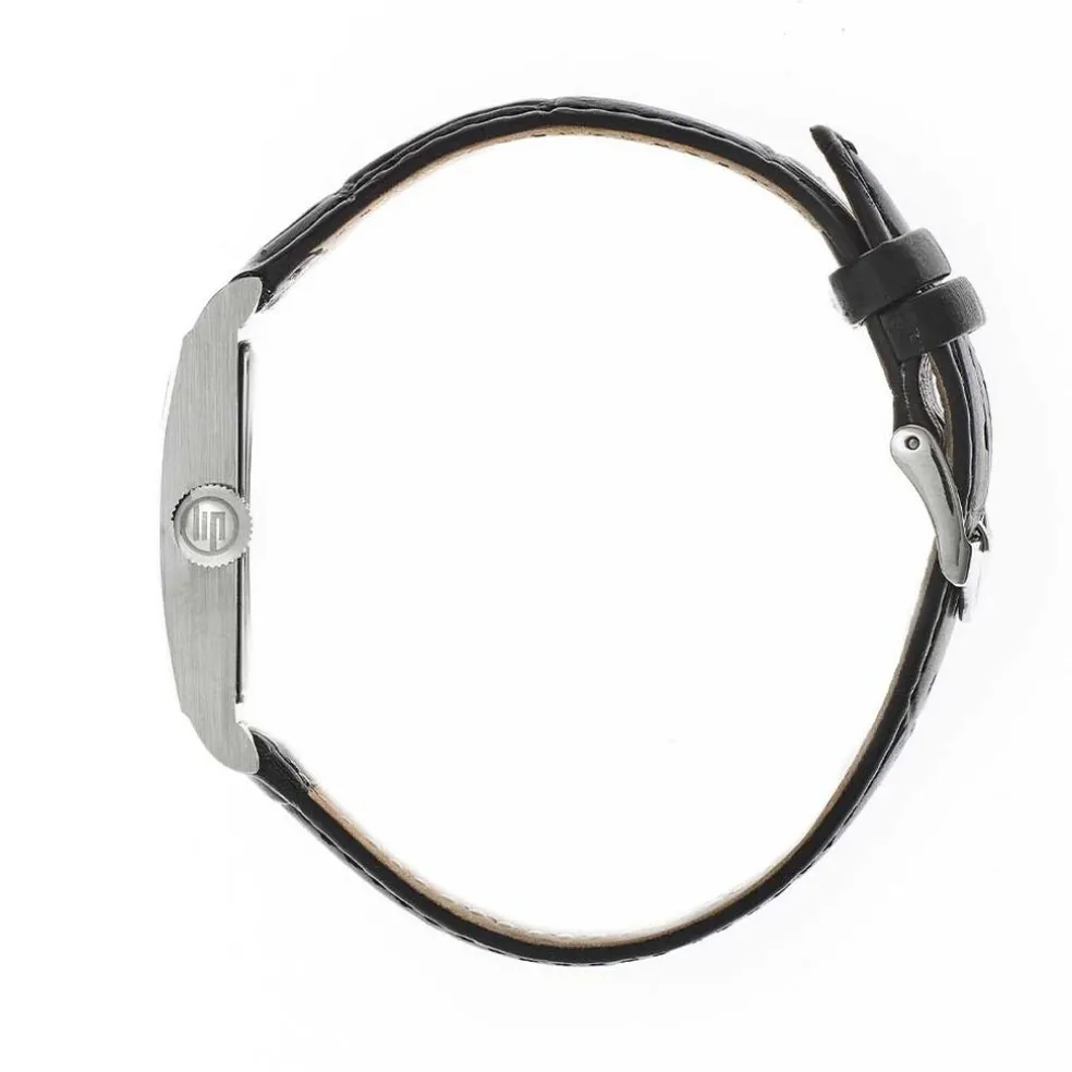 Montre Lip Churchill T24 Acier Argente Rectangulaire Quartz 23.5×41.50 Mm Fond Argente Bracelet Cuir Noir 671270