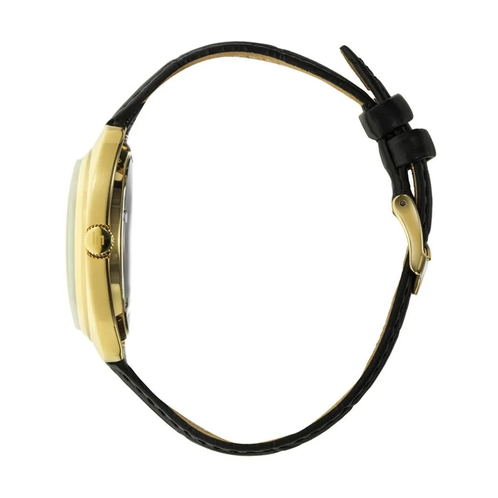 Montre Lip Général De Gaulle Acier Inoxydable Doré Quartz Ronde 35Mm Fond Noir Bracelet Cuir De Veau Noir 671878