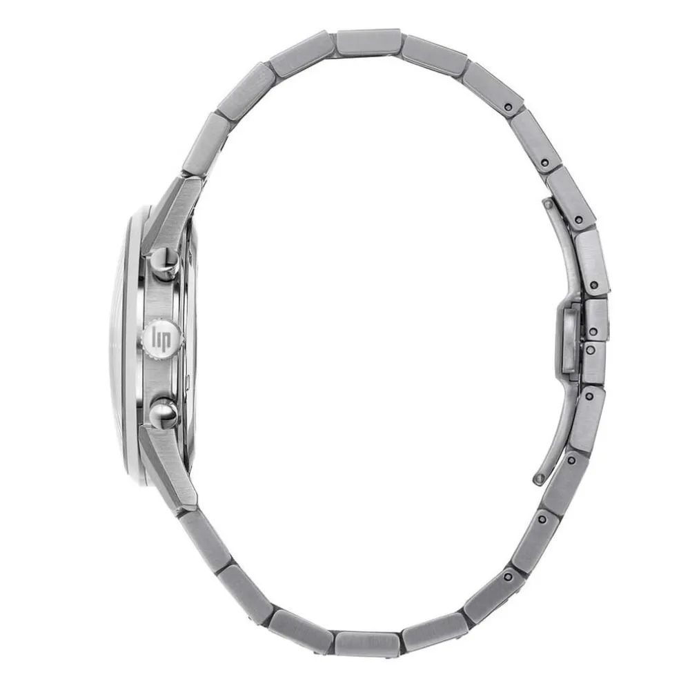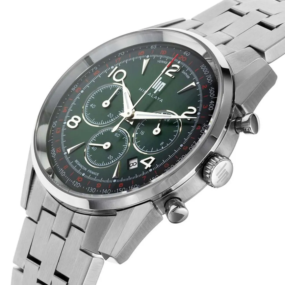 Montre Lip Himalaya Chrono Acier Argente Ronde Quartz Chronographe 40mm Fond Vert Bracelet Acier Argente 671711