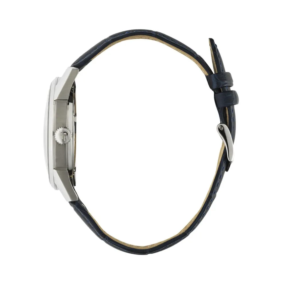 Montre Lip Himalaya Acier Argenté Automatique Ronde 40mm Fond Bleu Coeur Ouvert Bracelet Cuir De Vache Bleu 671725