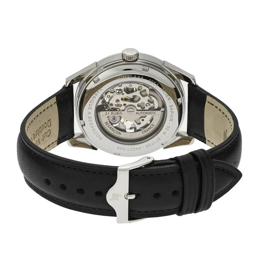 Montre Lip Himalaya Acier Inoxydable Argenté Automatique Ronde 40Mm Fond Noir C艙ur Ouvert Bracelet Cuir De Veau Noir 671726
