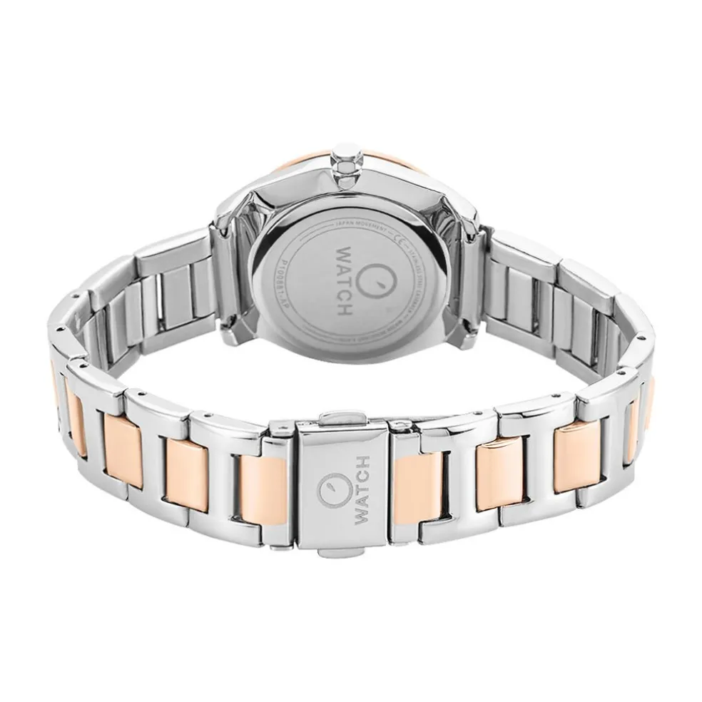 Montre O Watch Stylish Alliage Argenté Ronde Quartz 29mm Fond Argenté Bracelet Acier Bicolore P101010-f