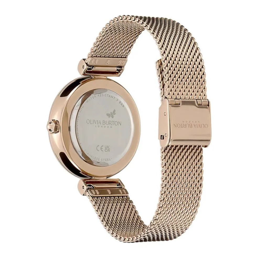 Montre Olivia Burton Minima Bee Acier Rose Ronde Quartz 36mm Fond Rose Bracelet Milanais Acier Rose 24000097