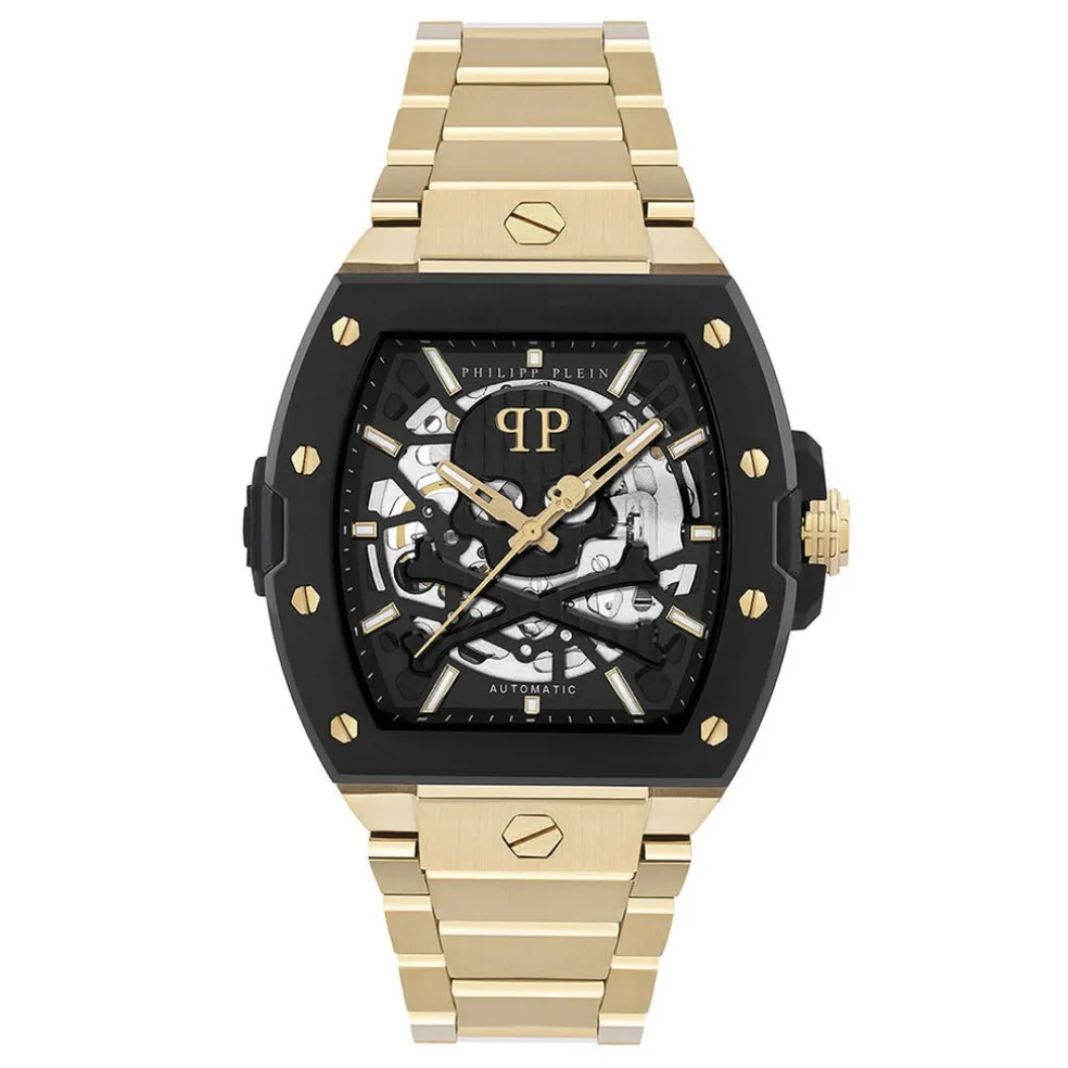 Montre Philipp Plein The $keleton 2.0 Acier Noir Tonneau Automatique 44mm Fond Noir Bracelet Acier Inoxydable Doré Pwjfa0625