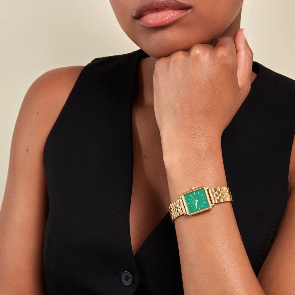 Montre Rosefield Boxy Xs Acier Doré Rectangulaire Quartz 22x24mm Fond Vert Bracelet Acier Doré Begsg-q050