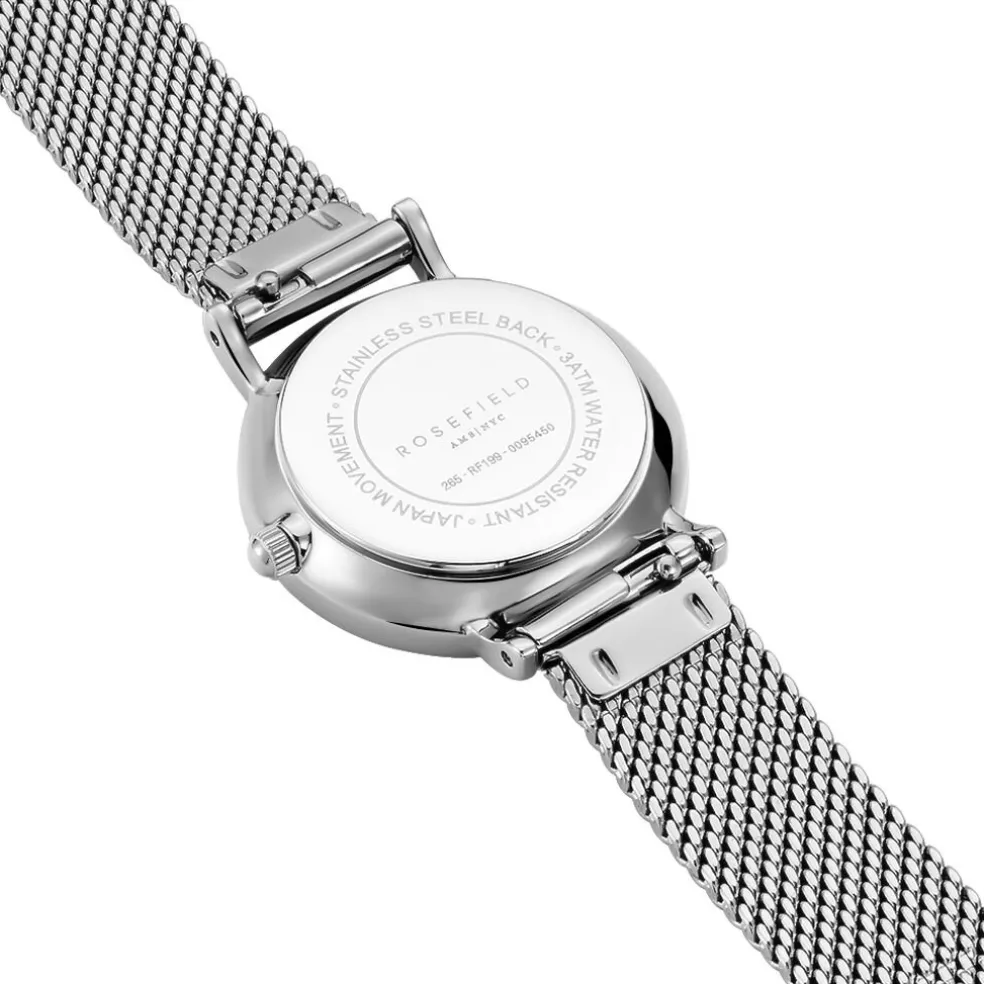 Montre Rosefield Small Edit Acier Argenté Ronde Quartz 26mm Fond Blanc Bracelet Milanais Acier Argenté 26ws-266