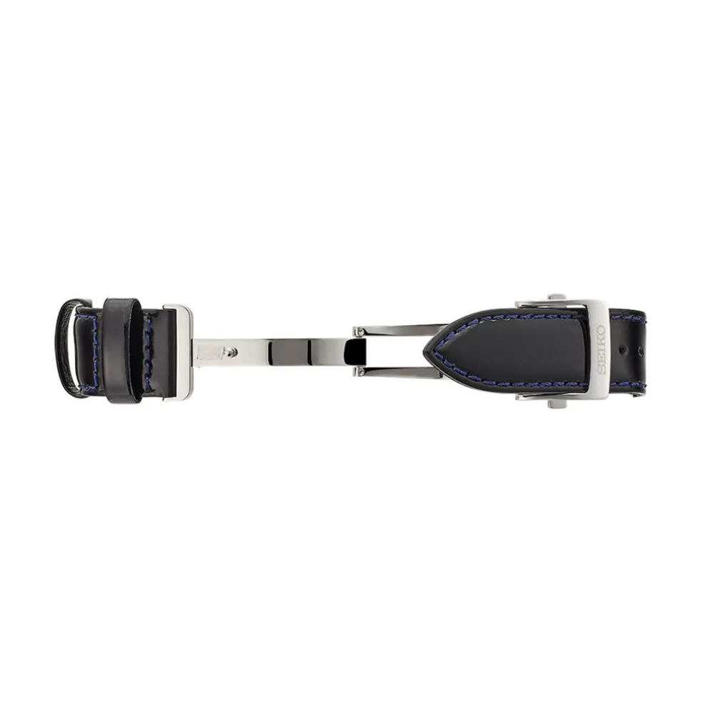 Montre Seiko Presage Acier Blanc Ronde Automatique 40mm Fond Bleu Bracelet Cuir Noir Ssa343j1