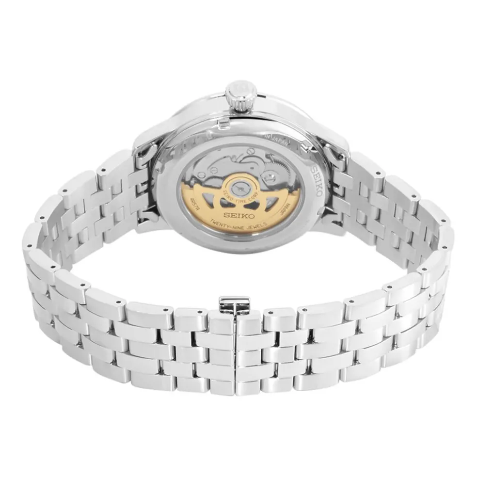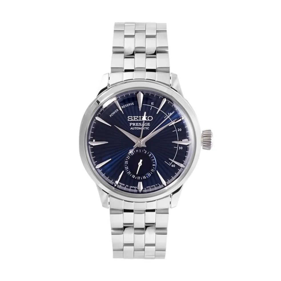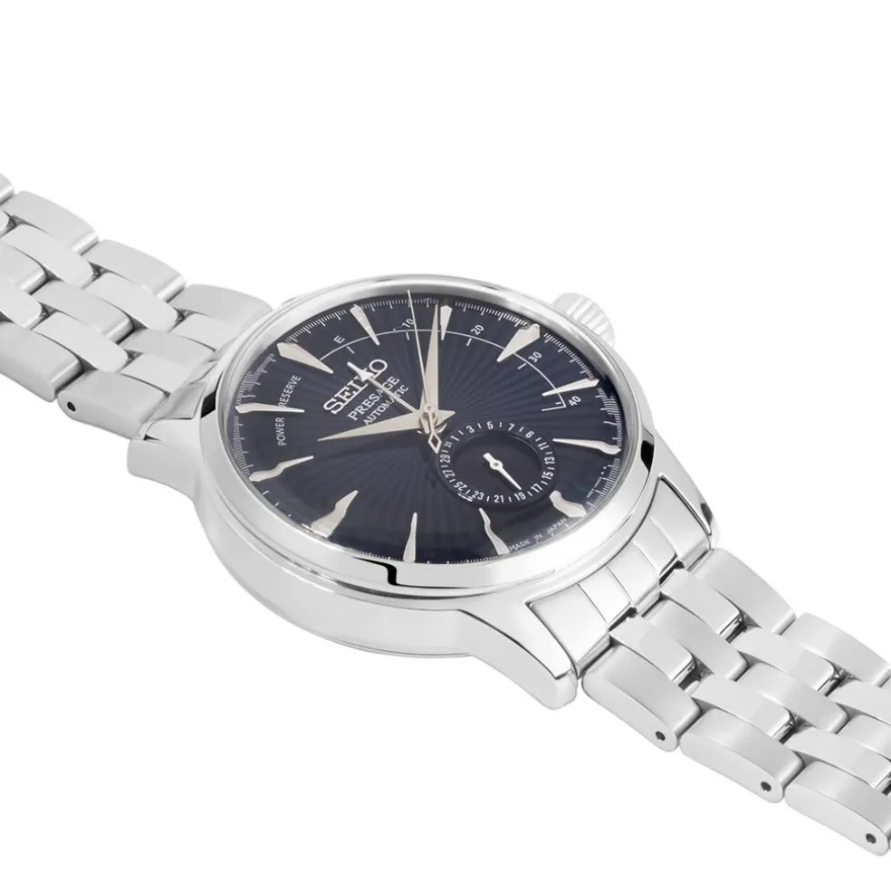 Montre Seiko Presage Acier Blanc Ronde Automatique 40.5mm Fond Bleu Foncé Bracelet Acier Gris Ssa347j1