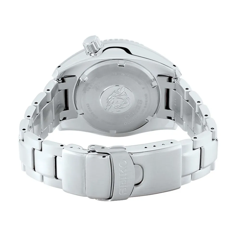 Montre Seiko Prospex Acier Blanc Ronde Quartz Automatique 45mm Fond Vert Bracelet Acier Blanc Spb103j1