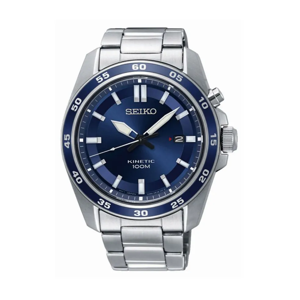 Montre Seiko Sport0 Acier Blanc Ronde Quartz Kinétic 43mm Fond Bleu Bracelet Acier Blanc Ska783p1