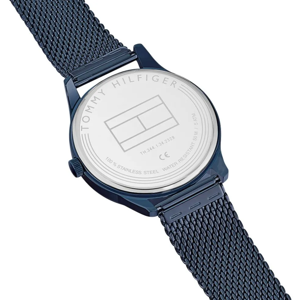 Montre Tommy Hilfiger Damon Acier Bleu Ronde Quartz 44mm Fond Bleu Bracelet Acier Bleu Maille Milanaise 1791421